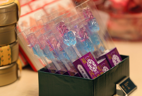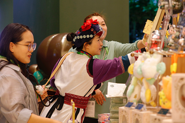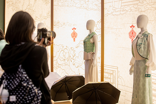 展区还集中展示了恭博近年来推动中华优秀传统文化创造性转化和创新性发展的重要成果。文创产品涵盖“恭·时尚”品牌服饰、雅致家居、文具、手办及“恭小福食礼”系列食品等。设计团队深入挖掘紫藤垂蔓、海棠花窗、竹林光影以及“天下第一福”等经典文化符号,并融合古法缠花、盘金刺绣等非遗技艺,实现从“器物之美”到“生活之用”的转化,真正让中华优秀传统文化走入大众生活日常。