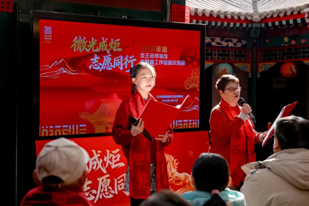 为深入学习贯彻习近平总书记关于志愿服务的重要指示精神,积极响应党中央对志愿服务事业的高度重视与殷切期望,进一步弘扬奉献、友爱、互助、进步的志愿精神,2026年1月24日下午,恭王府博物馆举办“微光成炬志愿同行”志愿者工作总结交流会。来自不同岗位的志愿者代表齐聚一堂,共同回顾志愿服务历程,交流服务经验,凝聚奋进力量。
