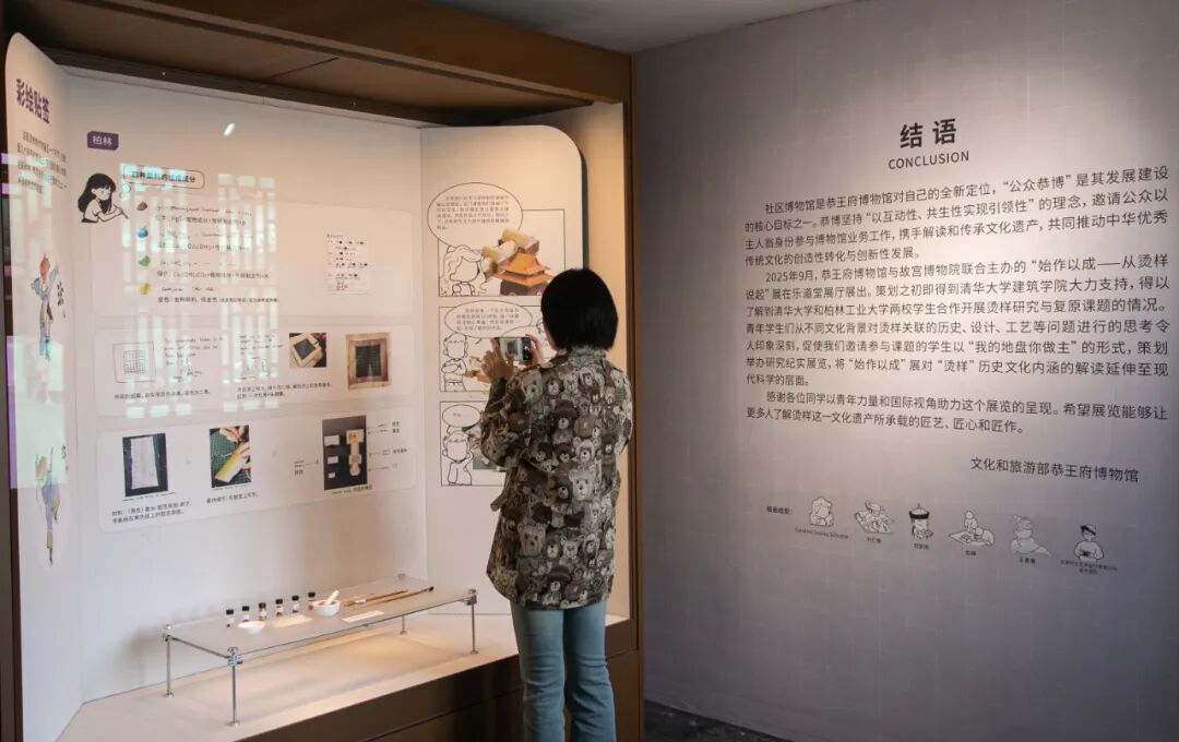 2025年,恭王府博物馆与故宫博物院联合主办“始作以成——从烫样说起”展,深入解读烫样“见微知著”的文化内涵。本次展览作为“始作以成”展的延伸展,将视角从历史文化内涵研究转向烫样本体的科学研究,聚焦于烫样的构造及传统烫样制作技艺复原,从“怎么看”“怎么想”“谁来做”“如何做”等角度,系统梳理清华大学、柏林工业大学两校建筑学院师生围绕烫样开展的记录、研究、检测与复制工作。展览得到清华大学建筑学院、德国柏林工业大学建筑学院建筑与城市历史系以及柏林民族学博物馆的大力支持。