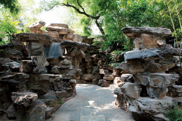 花园东南山坡之间的羊肠小道。两侧叠石层垒,绿竹萌蔽,左弯右转,幽深僻静。