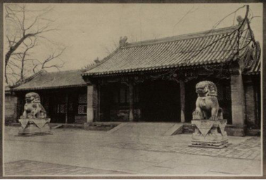 其次,对王府大门之装饰、色彩等亦有规定。府门外有石狮、灯柱、拴马桩及辖禾木等设施。隔门前横路,须在与府门相对处建一影壁。府门前,有石狮一对,分踞门之左右。如果两座阿司门是东西相对,允人通行者,其中必有一四方大院,一对石狮不临街而置于院内,故又称之为“狮子院”。凡此格局者,其府门对面则非影壁,而是平房一排,旧为兵丁所住,或回事处之所在。清代的郑王府、礼王府、定王府等,均属此类。