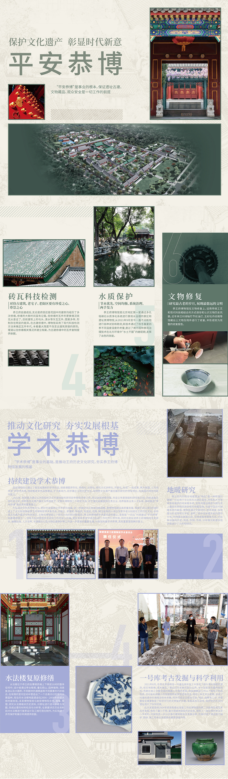 恭王府博物馆希望搭建起一座让文物历史、文化审美走进每个人生活的桥梁,成为向公众展示、传播中华优秀传统文化的场所,为发展文博事业、建设社会主义文化强国不断作出新贡献。