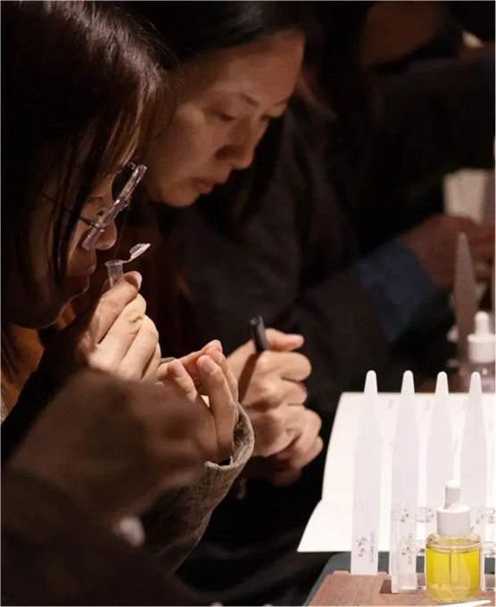 静谧的“恭王府·安善堂”传统生活美学馆内,一缕海棠香正缠着光影轻舞。鎏金香著轻搅间,自制的合香缓缓流入掌中瓶,撷取满园春色,裹挟半卷清词,将草木精魂凝于方寸之间,化作一室清雅。芬芳氤氲,清香袅袅,恍若置身幽谷,雅致非凡……3月27日,一场别开生面的调香体验活动正在进行。